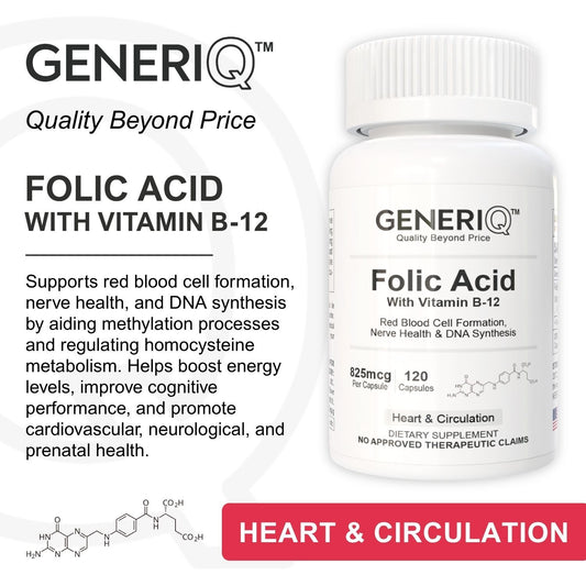 GENERIQ™ Folic Acid with Vitamin B-12, 825mcg