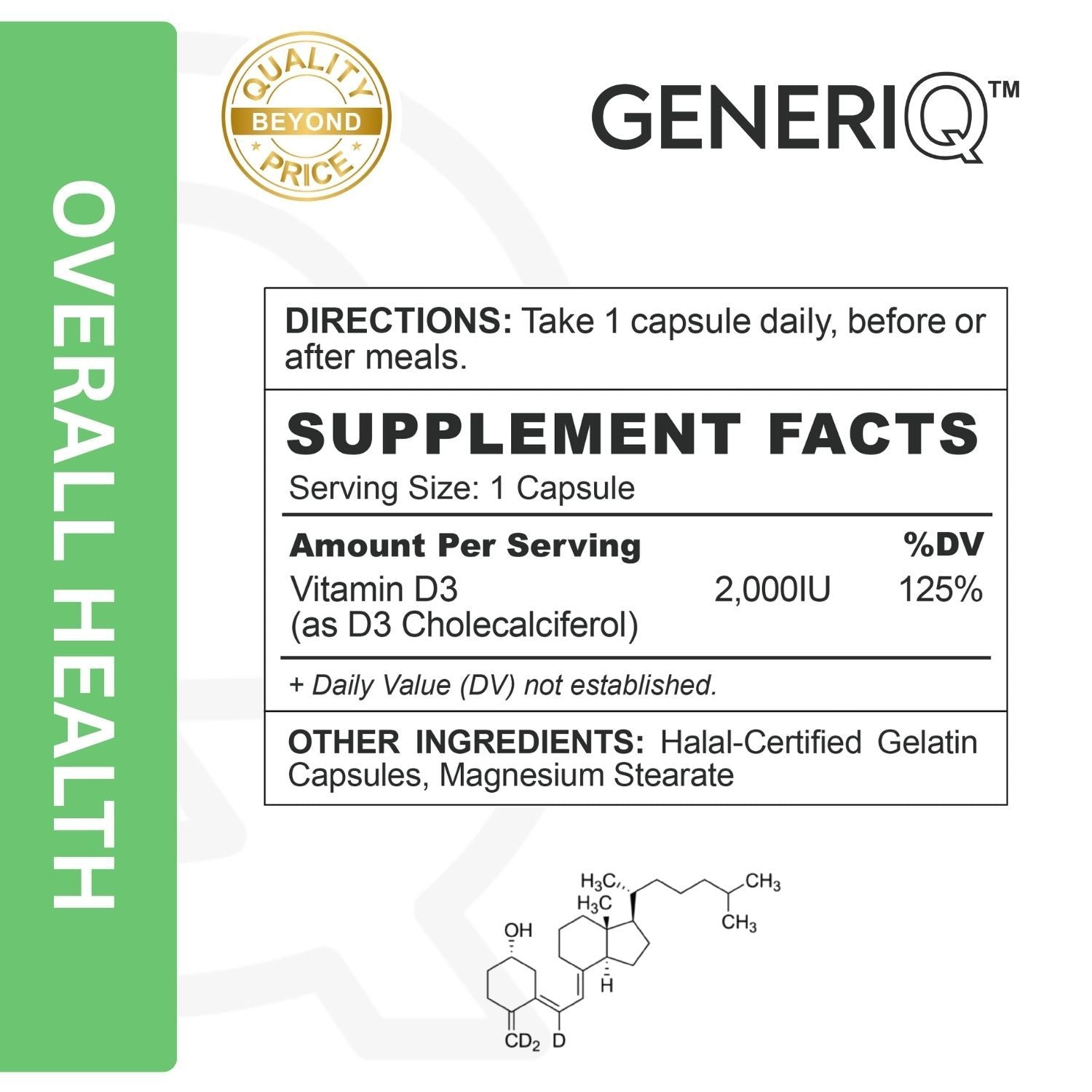 • Vitamin D3 (as D3 Cholecalciferol) – 2,000 IU