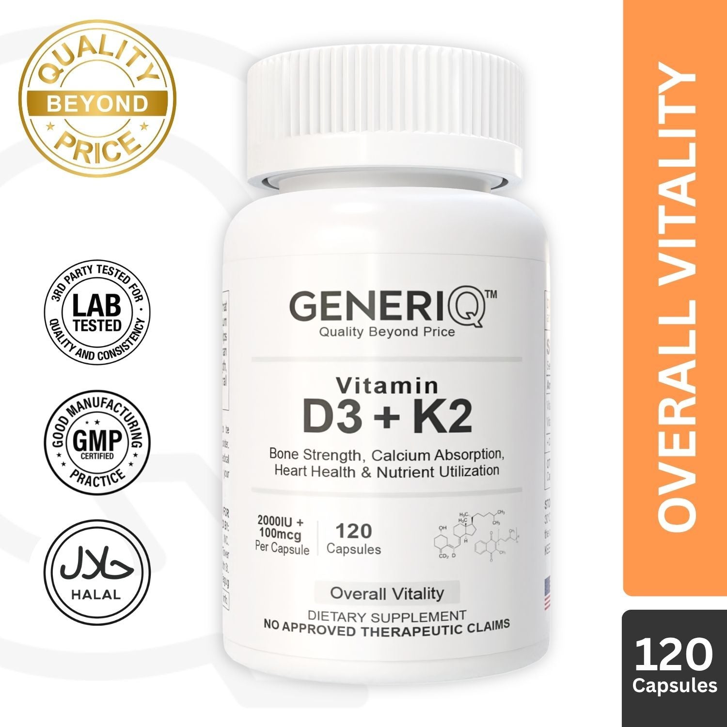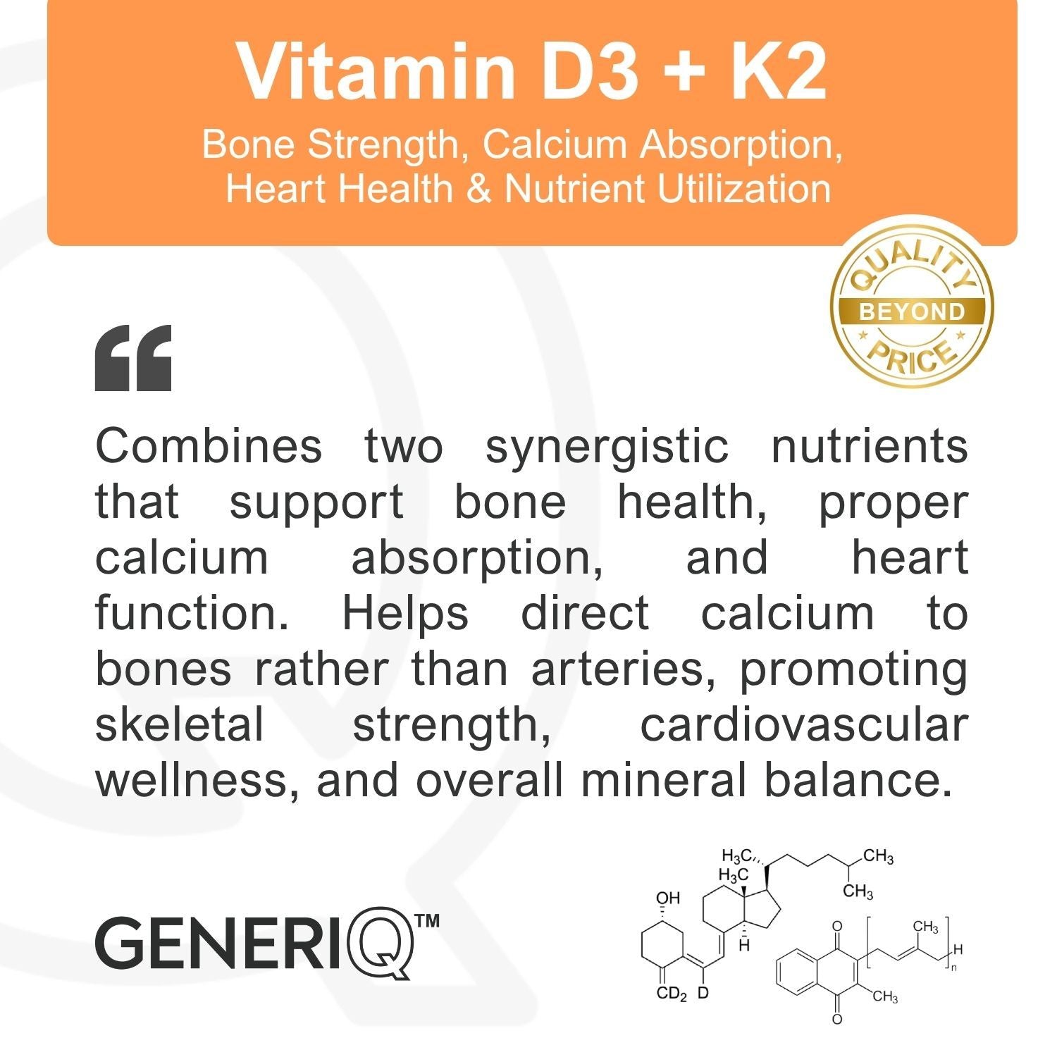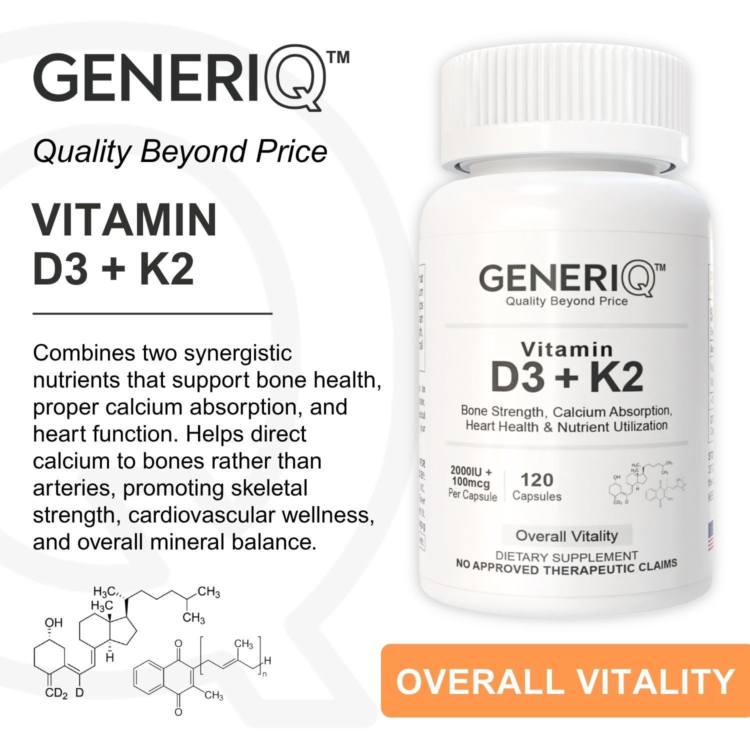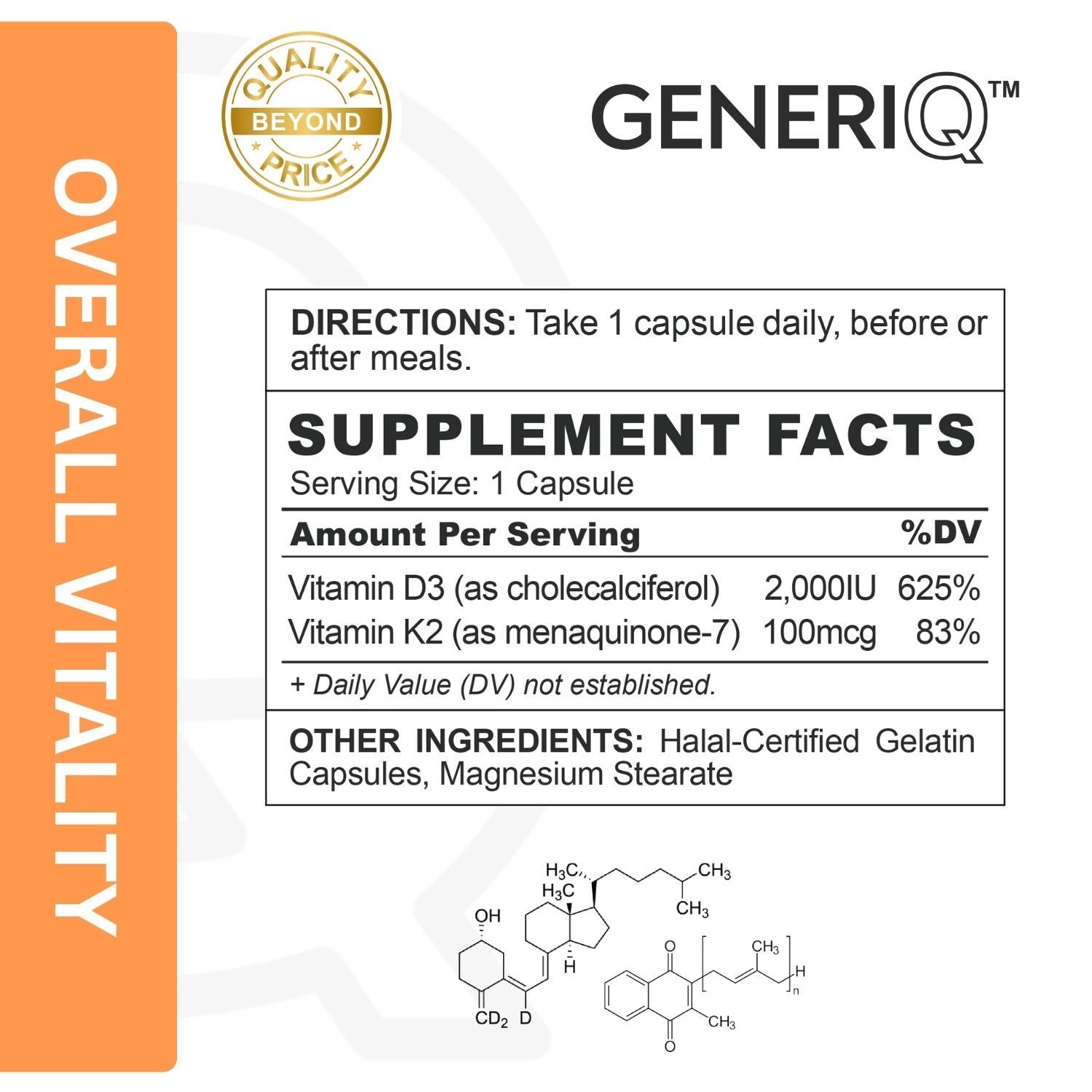 GENERIQ™ Vitamin D3 + K2, 2KIU / 100mcg