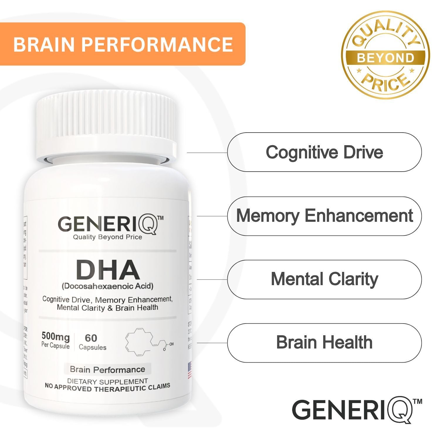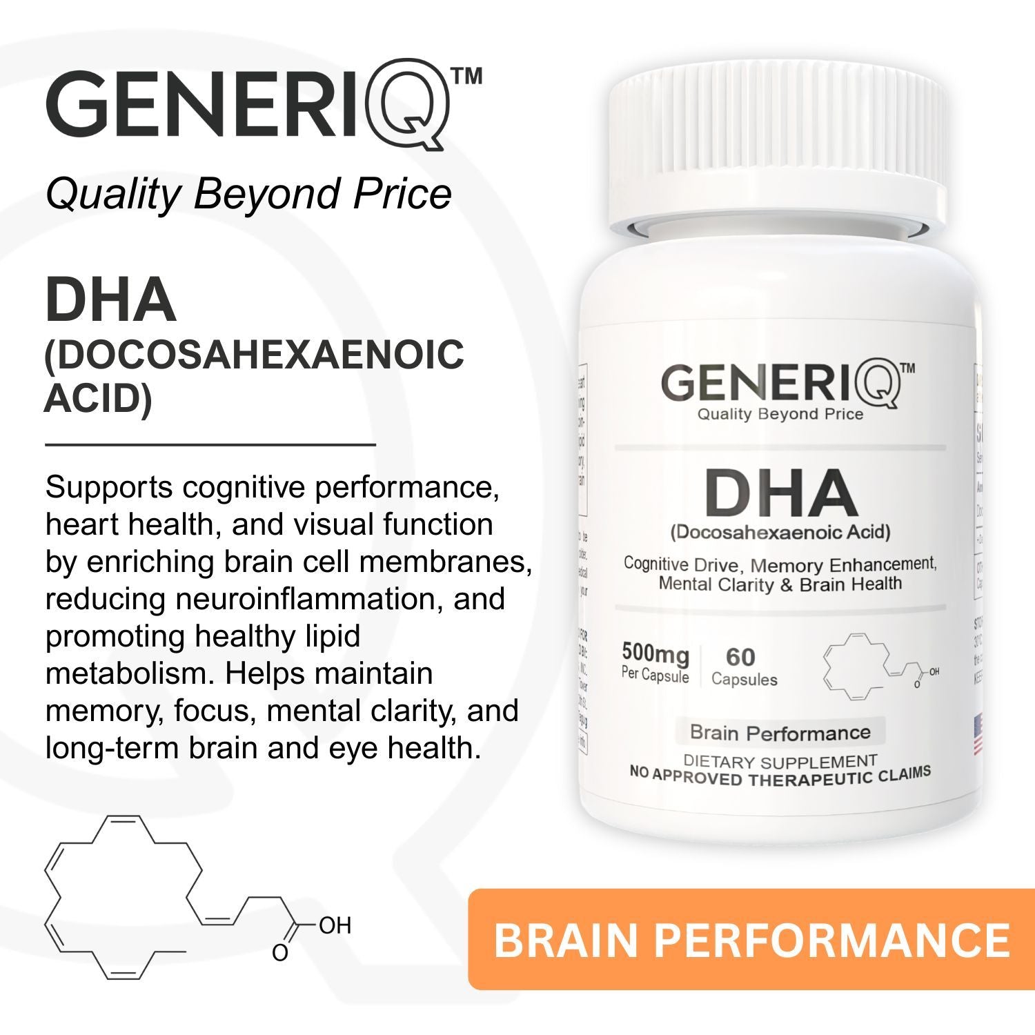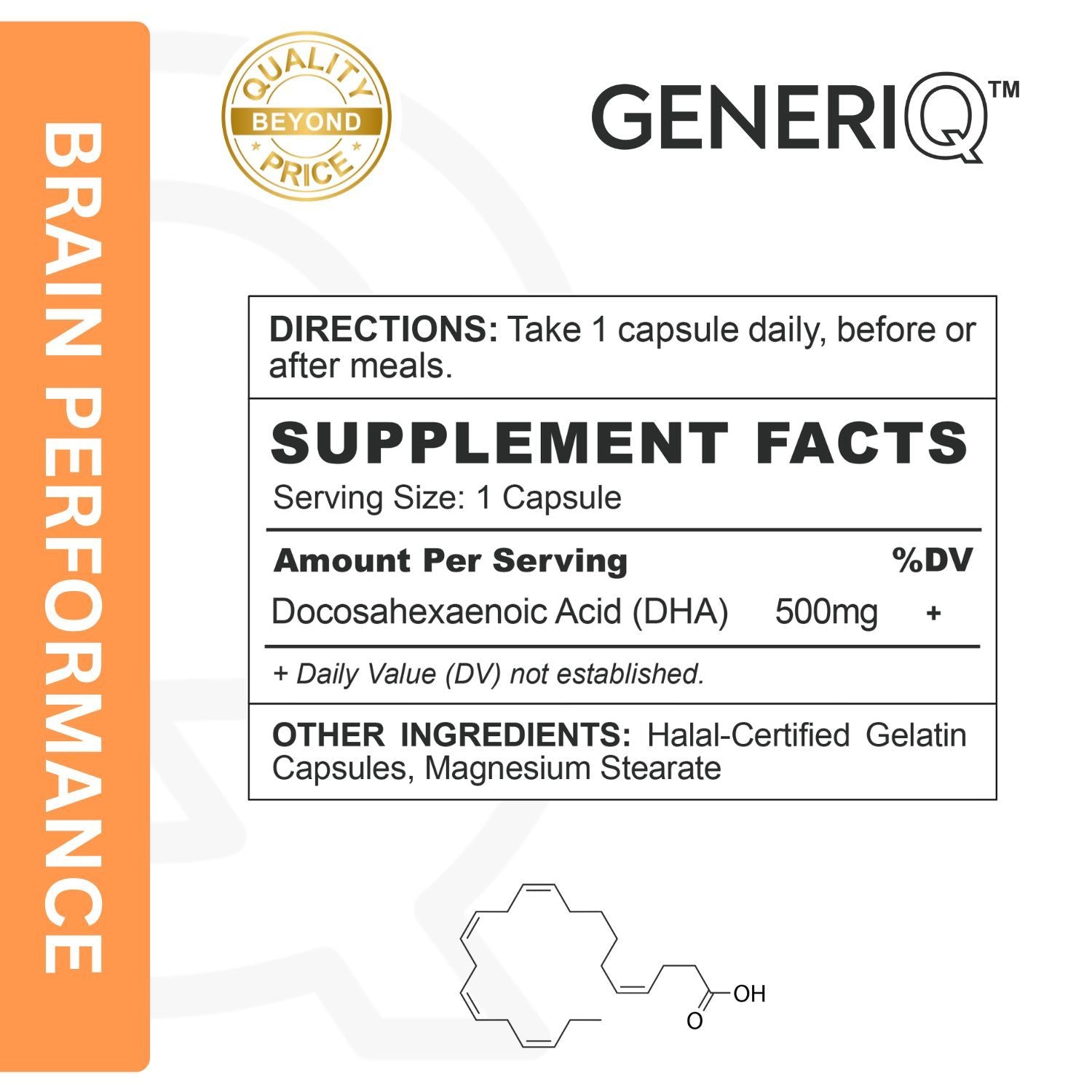 GENERIQ™ DHA (Docosahexaenoic Acid), 500mg