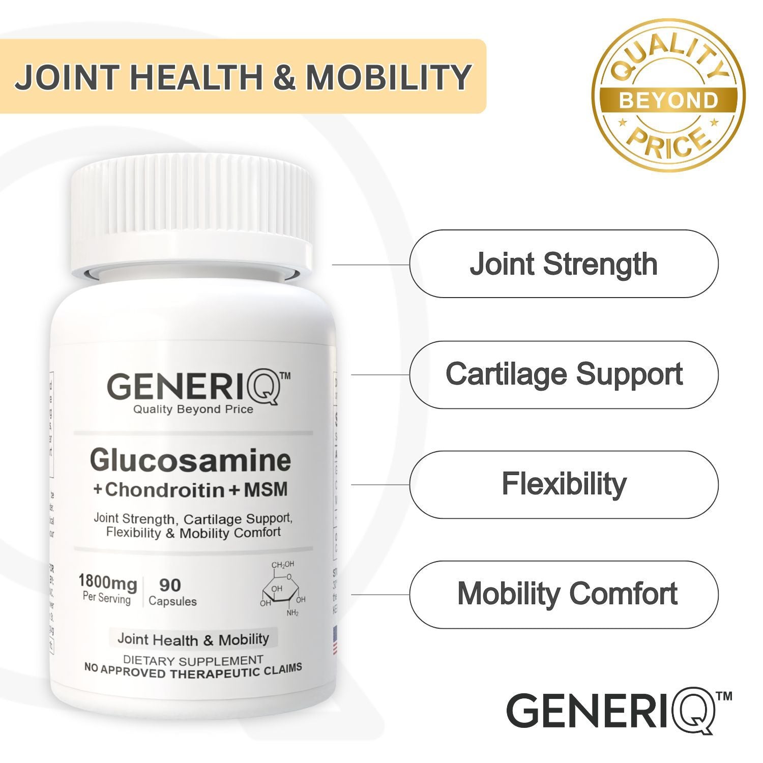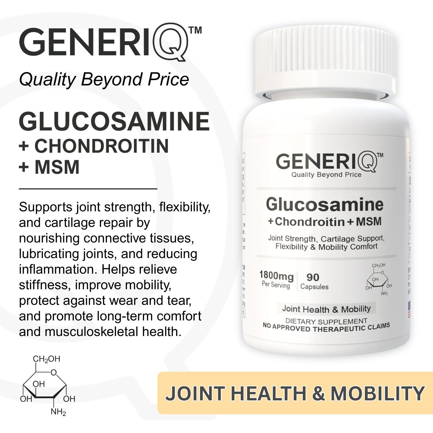 GENERIQ™ Glucosamine + Chondroitin + MSM, 1800mg