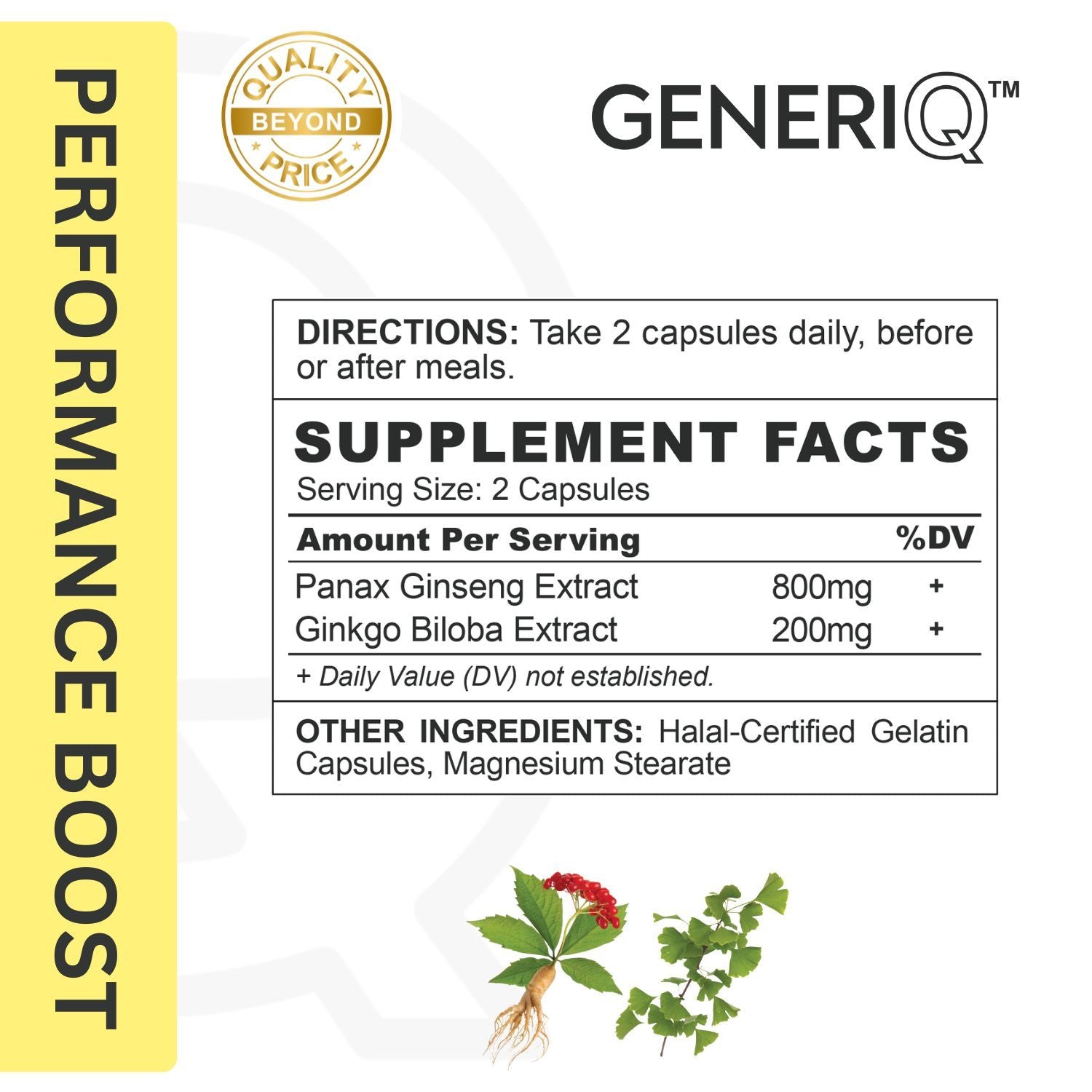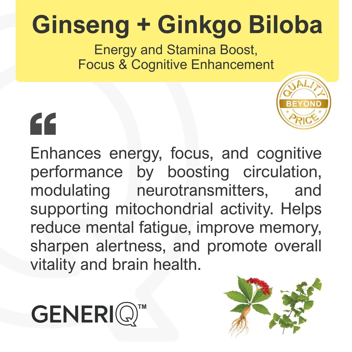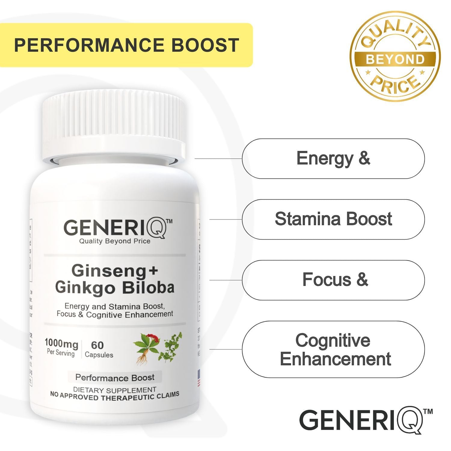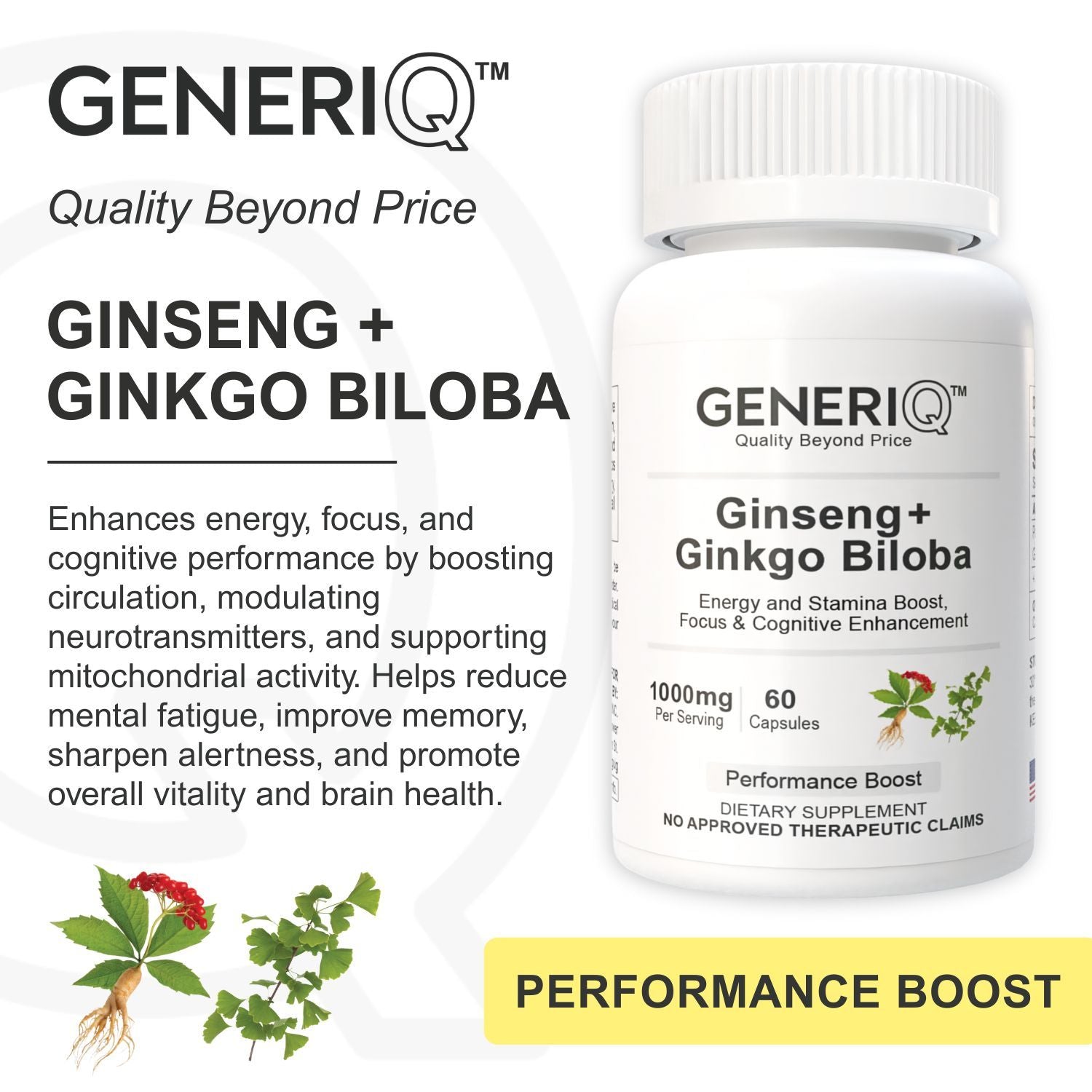 GENERIQ™ Ginseng + Ginkgo Biloba, 1000mg