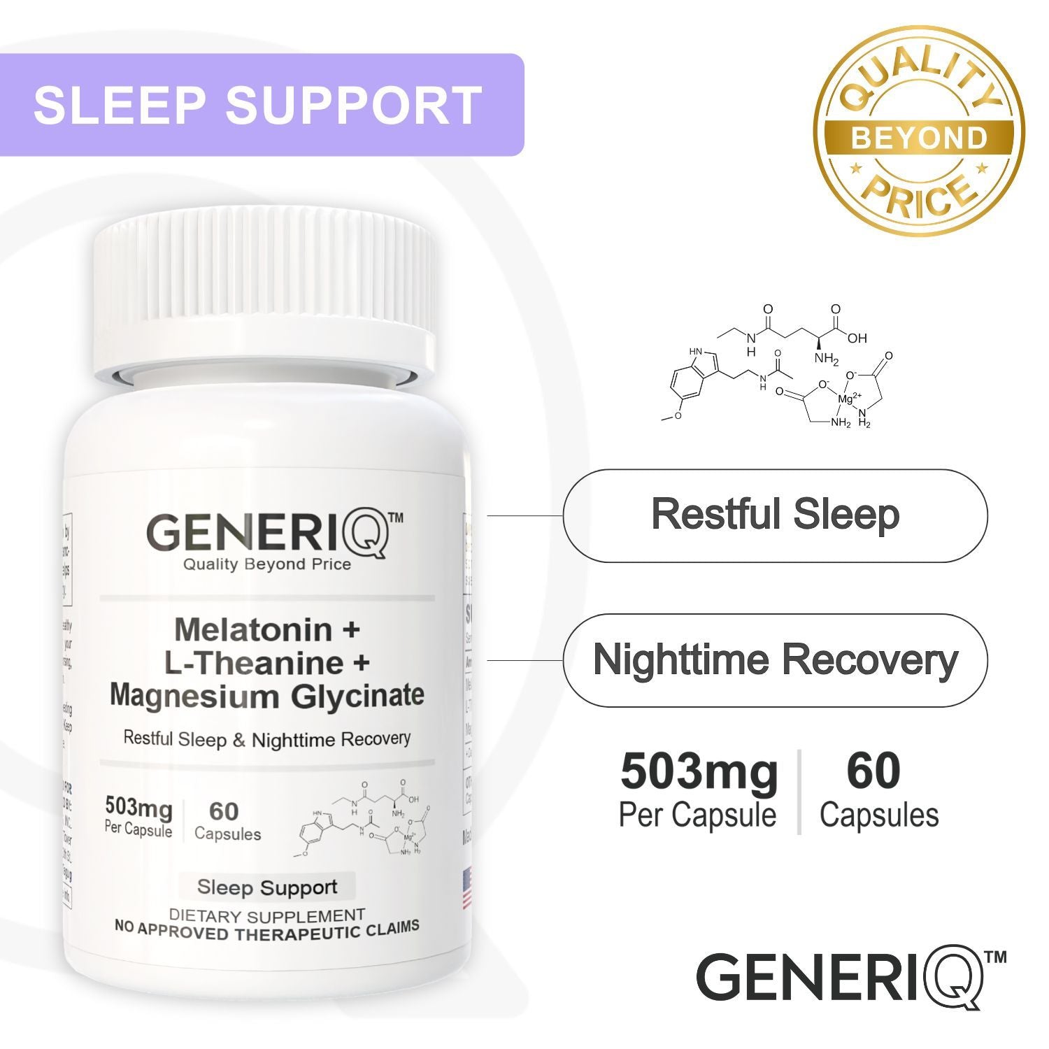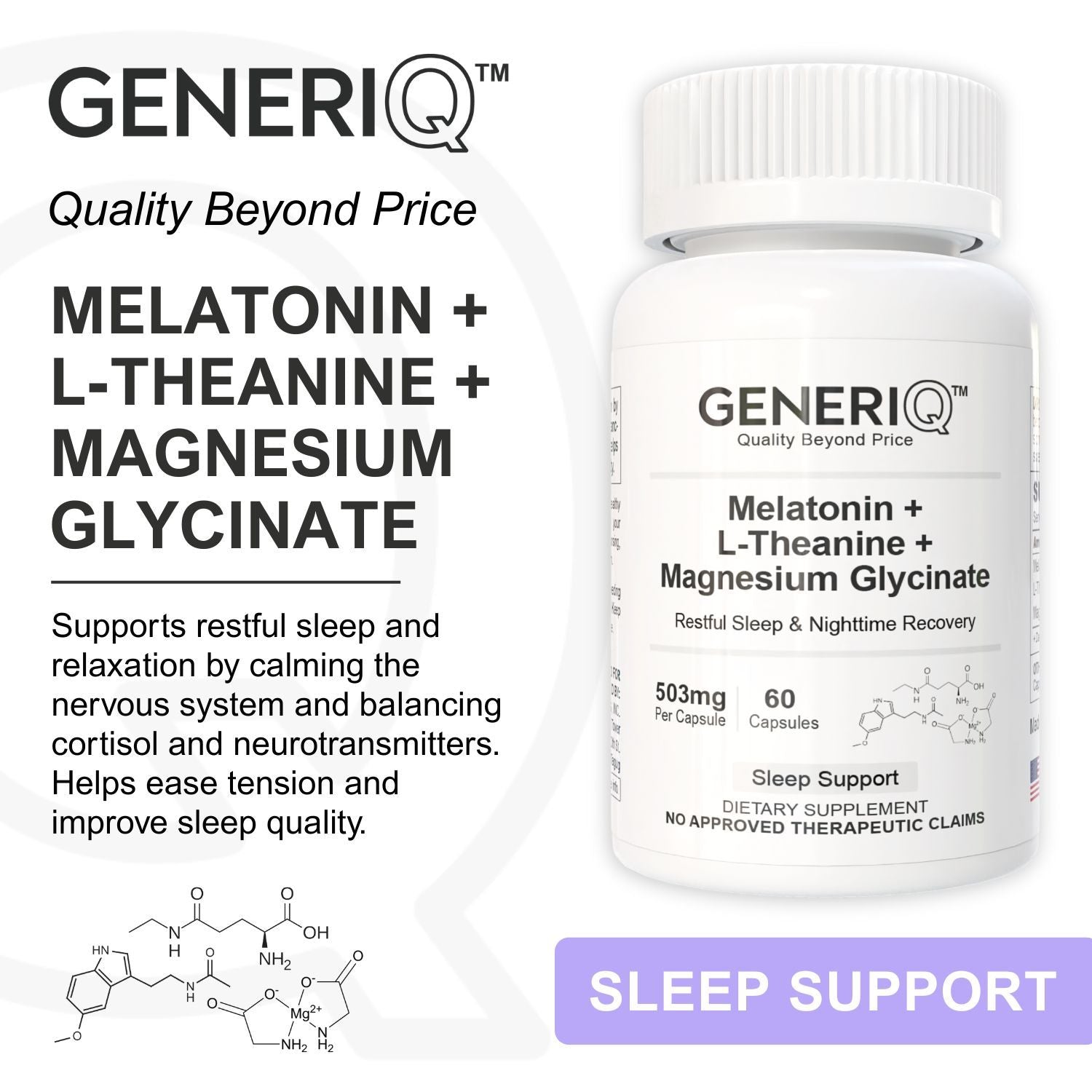 GENERIQ™ Melatonin + L-Theanine + Magnesium Glycinate, 503mg