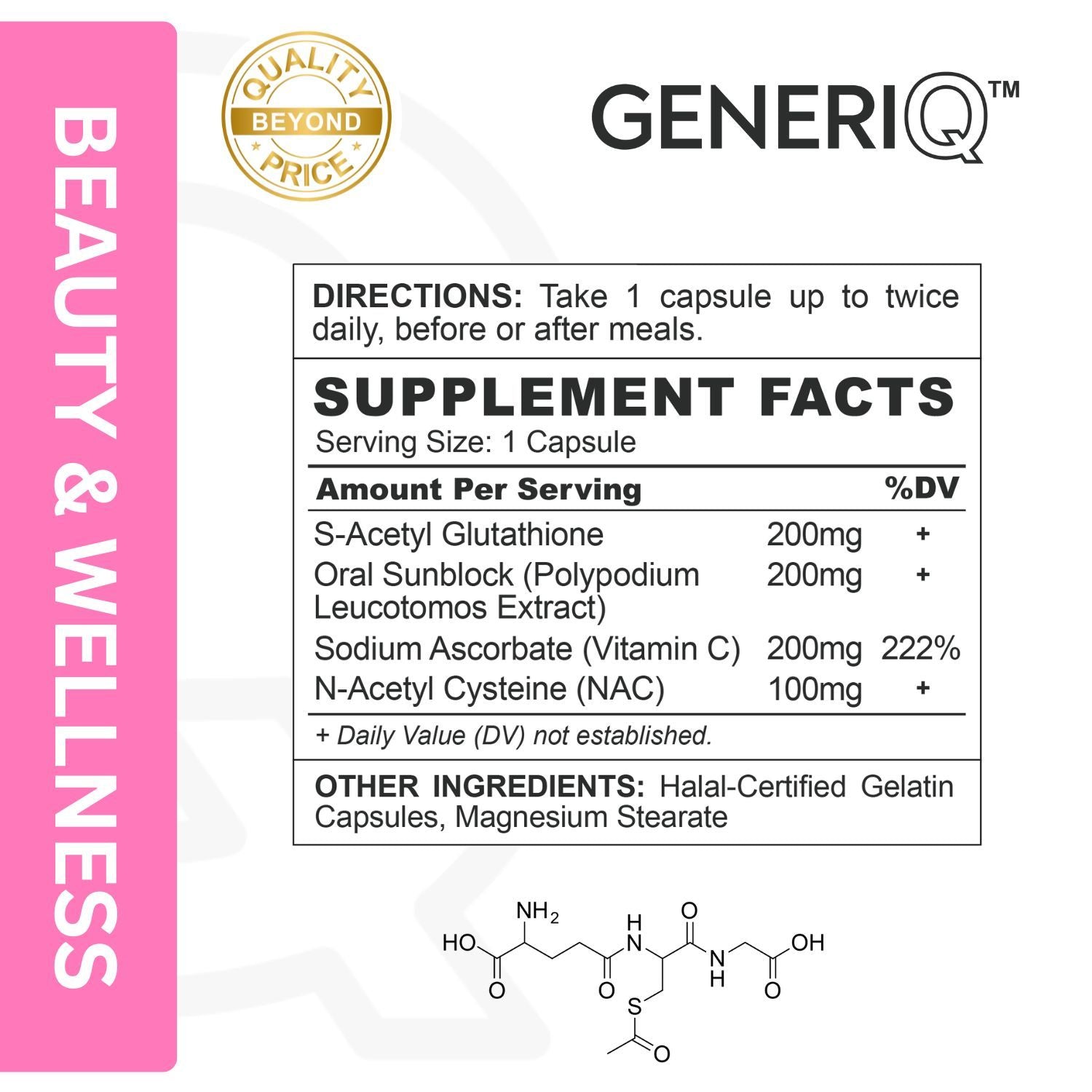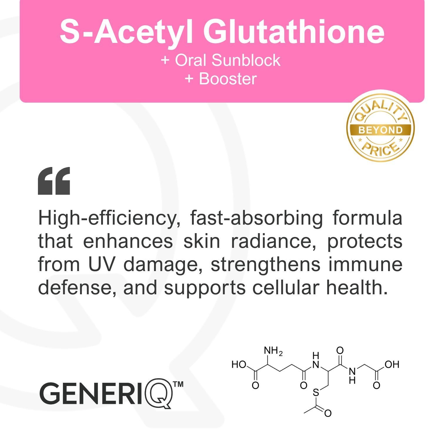 GENERIQ™ S-Acetyl Glutathione + Oral Sunblock + Boosters, 700mg