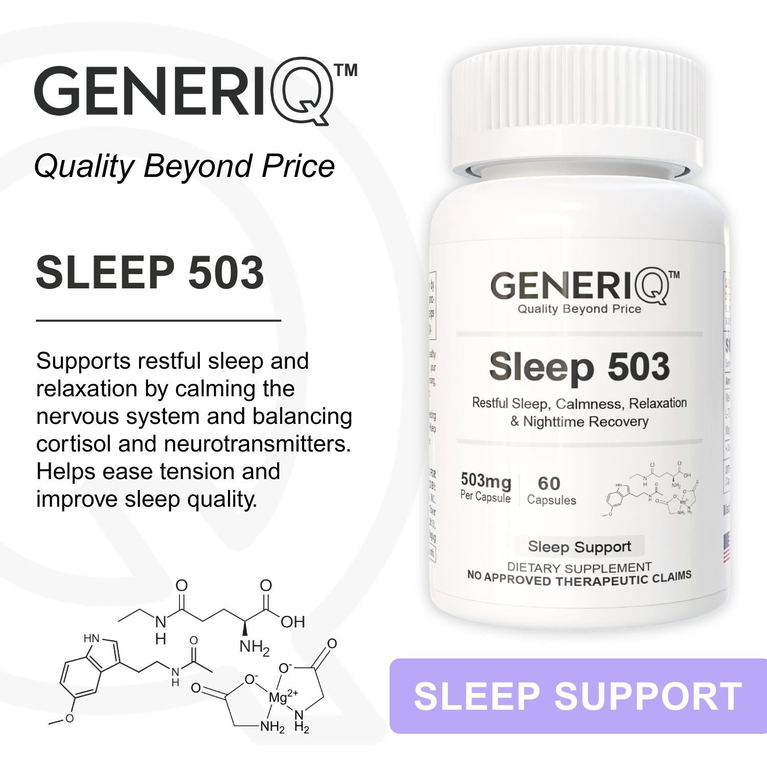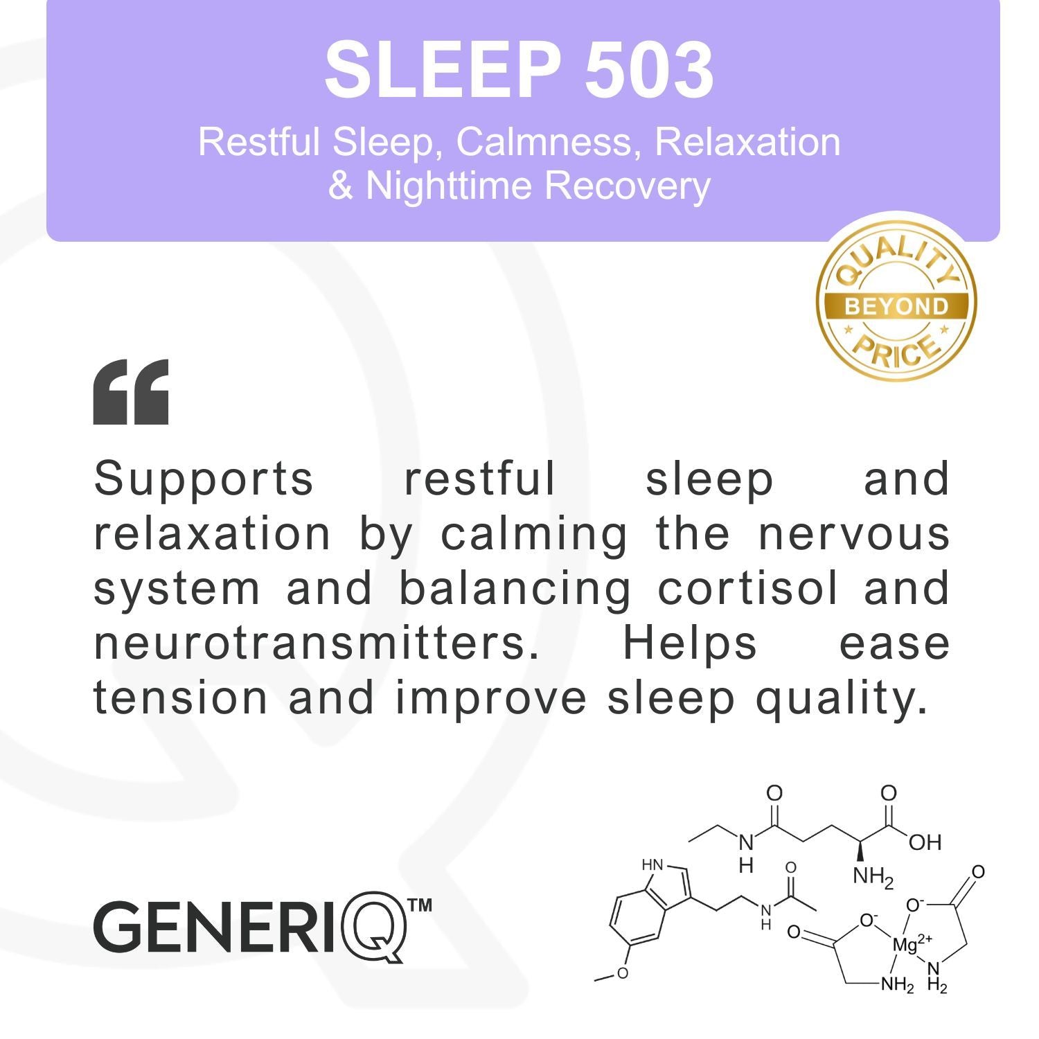 Sleep 503 uses a synergistic blend of neurotransmitter-regulating compounds to ease the transition into restful sleep. It balances circadian rhythms, calms neural activity, and reduces mental chatter, enabling deeper and more restorative sleep.