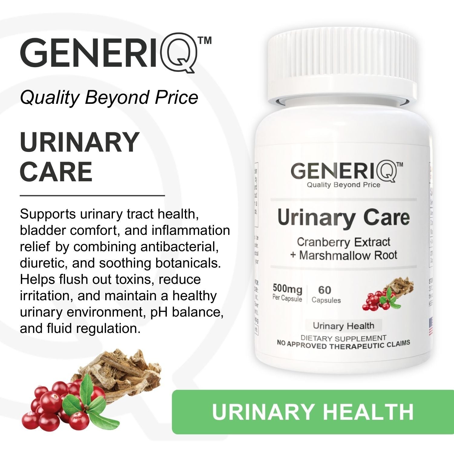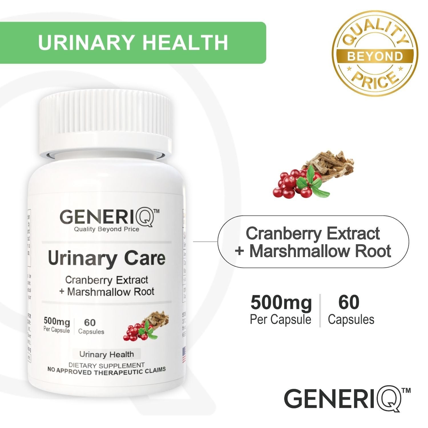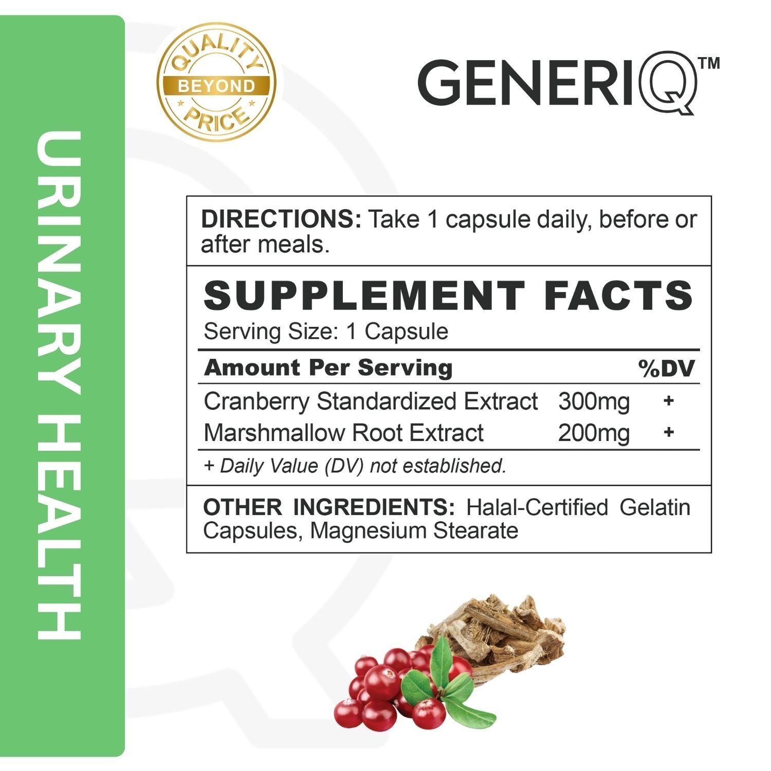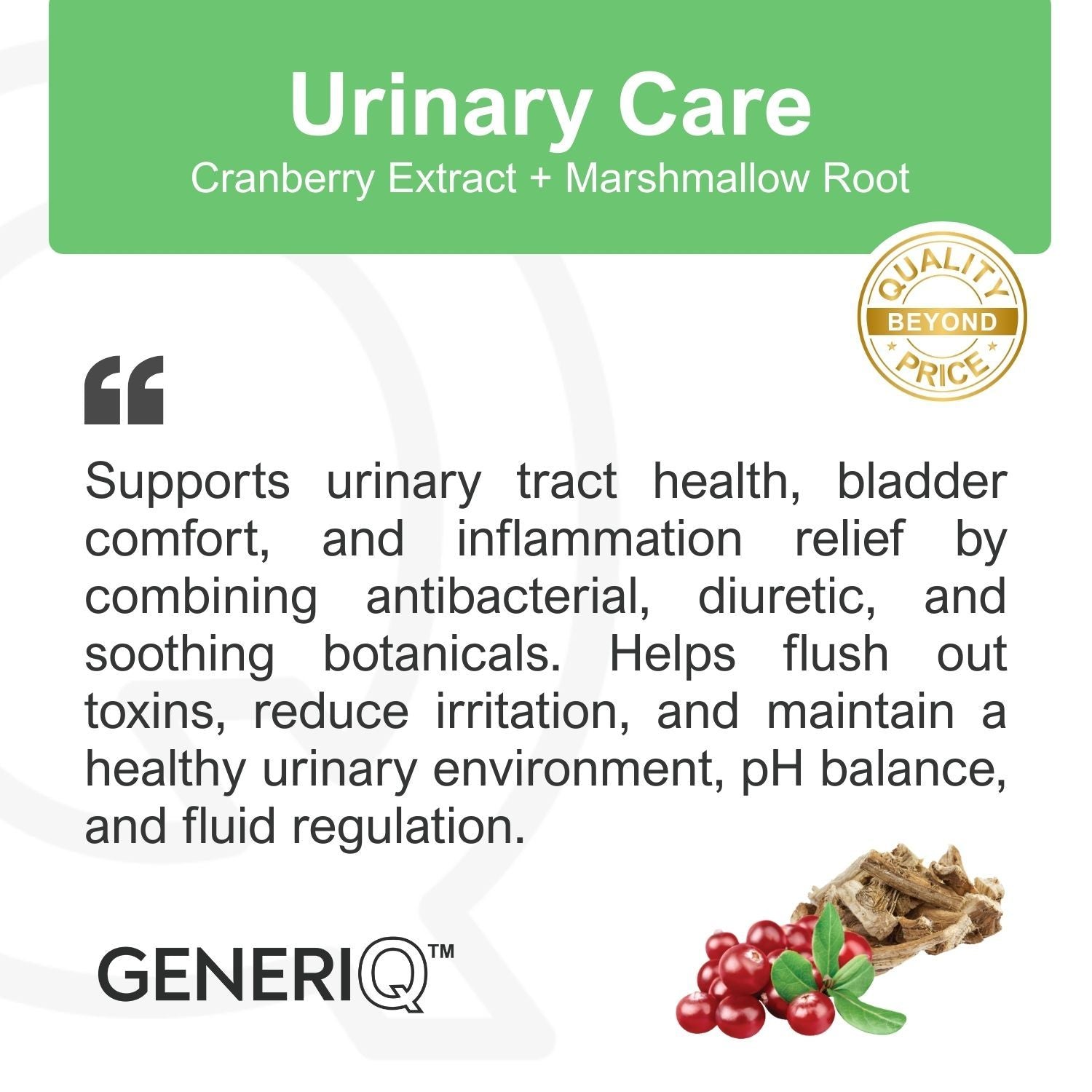Cranberry extract prevents bacterial adhesion to uroepithelial cells, disrupting biofilm formation. Marshmallow root coats mucosal membranes with protective polysaccharides, reducing inflammation and irritation of the urinary tract lining.