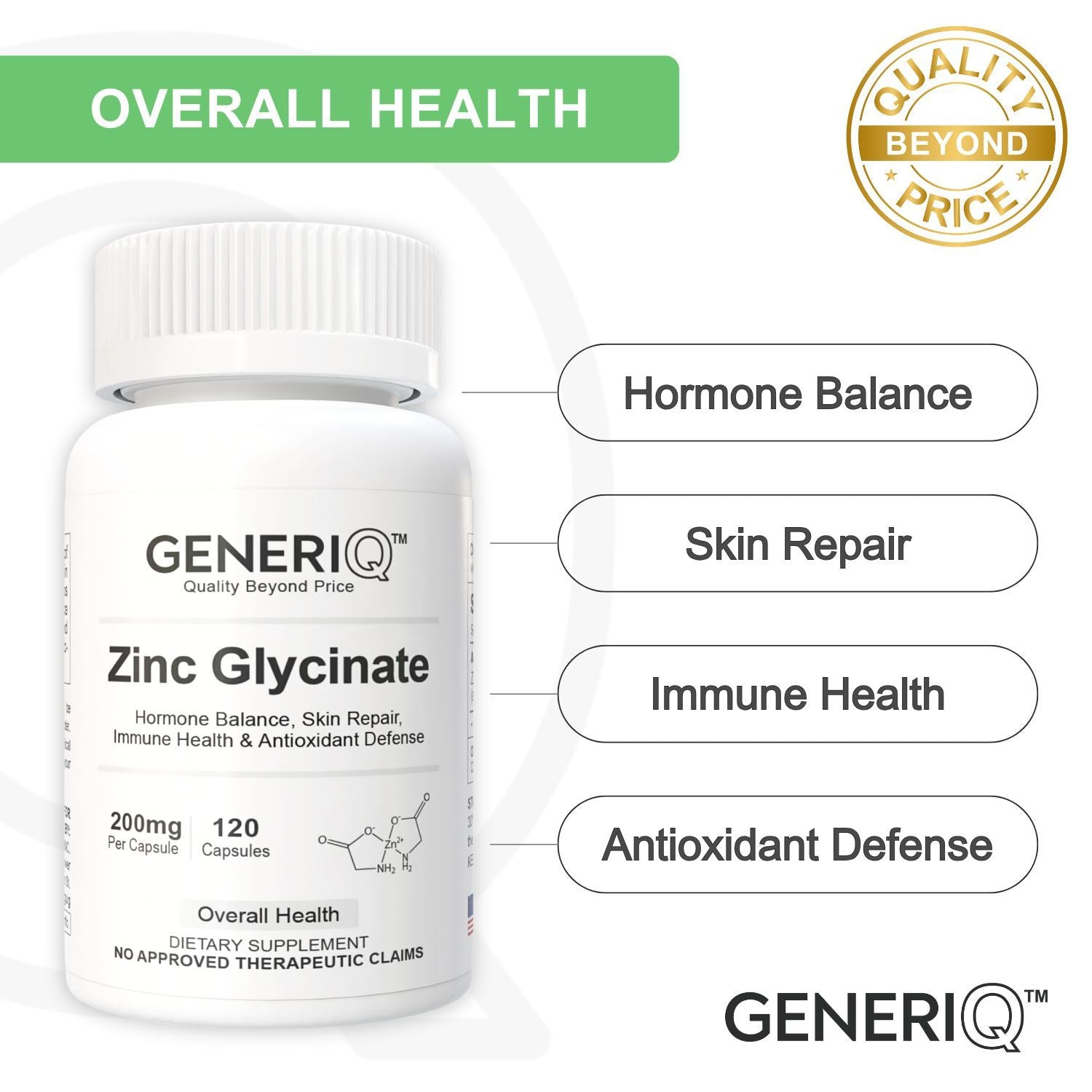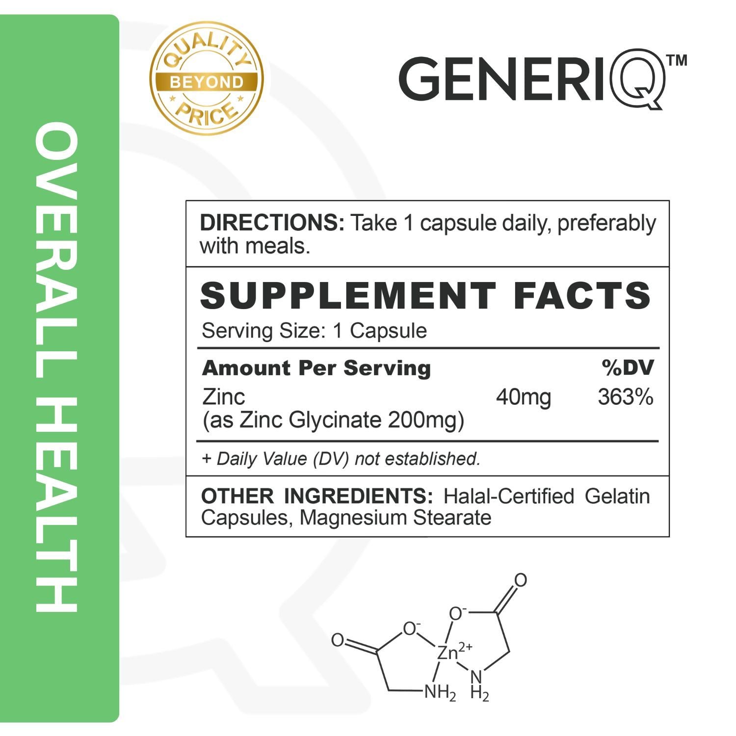 GENERIQ™ Zinc Glycinate, 200mg
