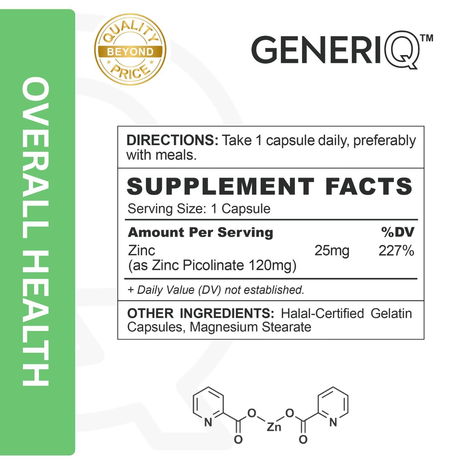 Zinc (as Zinc Picolinate 120mg) – 25mg elemental zinc